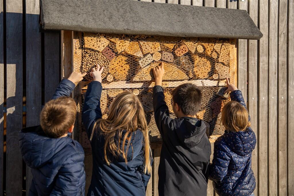 Ons schoolgebouw is warm, gezellig en veilig. Door de vele open ruimtes hebben kinderen van alle jaargroepen veel contact met elkaar en is clusteronderwijs mogelijk. De gezamenlijke ruimtes bieden alle gelegenheid om spelend en bewegend leren in de vorm van uitdagende thema’s rond ontwikkeling en onderwijs. Ons schoolplein kreeg er de afgelopen jaren steeds meer groen bij. Trekpleister voor veel kinderen is een heus insectenhotel.